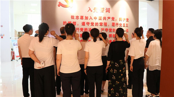 参观结束时,全体党员再次举起右手面对党旗进行庄严的宣誓。铿锵有力的誓言坚定了我心向党、忠诚为党的决心。