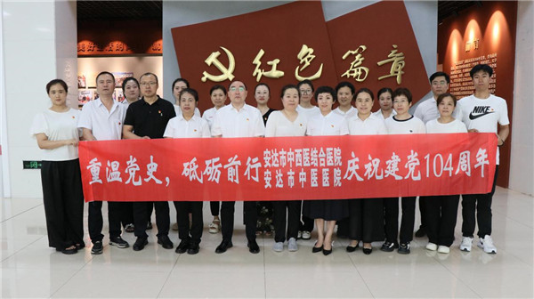 为庆祝中国共产党成立104周年,深入学习贯彻党的二十大精神,赓续红色血脉,汲取奋进力量,6月27日,市中西医结合医院、市中医医院全体班子成员及部分党员干部前往市新时代文明实践中心开展参观学习活动,在红色历史的熏陶中接受思想洗礼,强化使命担当。