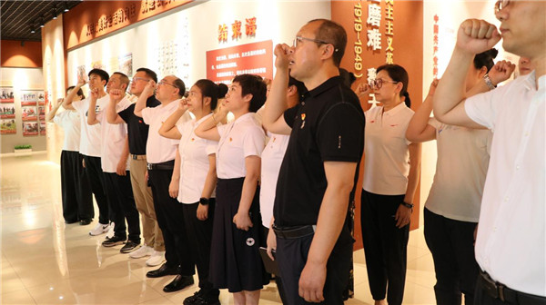参观结束时,全体党员再次举起右手面对党旗进行庄严的宣誓。铿锵有力的誓言坚定了我心向党、忠诚为党的决心。