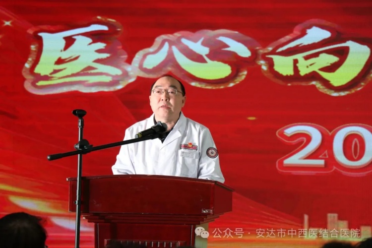 联欢会在热烈庄重的氛围中拉开帷幕。党支部书记高万发同志登台致辞,为整场晚会注入温暖而坚定的力量。他全面回顾了2025年医院发展的坚实足迹——从医疗技术的突破创新到服务质量的持续提升,从学科建设的稳步推进到医患和谐的生动实践,每一项成绩的取得,都凝聚着两院职工的心血与汗水。同时,高书记也对医院未来发展寄予殷切期望,鼓励全体同仁继续秉持“敬佑生命、救死扶伤、甘于奉献、大爱无疆”的职业精神,凝心聚力、锐意进取,共同书写医院高质量发展的新篇章。